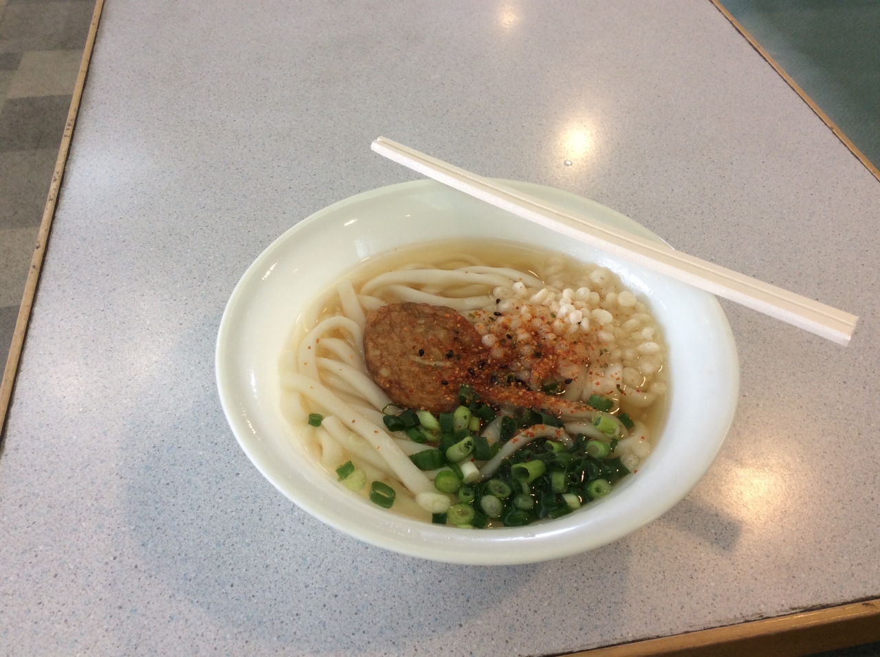 私は鹿児島に来て体重増加しつつあったので、あっさりのかけうどんにしたら