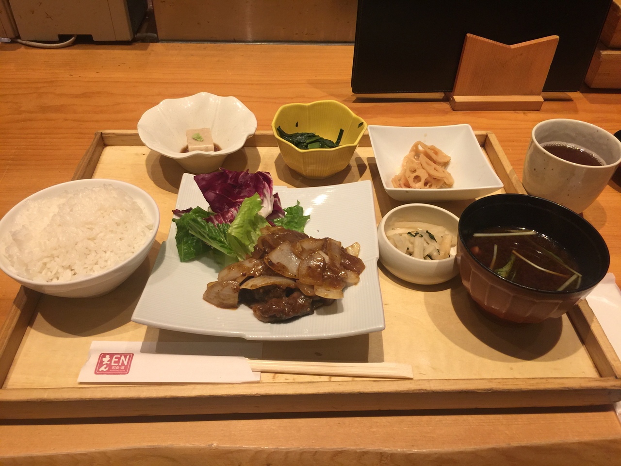 食べたのは牛ハラミの辛味噌炒め!おばんざいが3品付いて1,080円です。