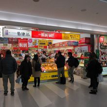 鹿児島空港利用の際に立ち寄った日本航空系列の土産物店です。鹿児島らしい焼酎の品数が多く、店の奥の棚にぎっしりと並べられていました。他にはやはり「かるかん」と「唐芋レアケーキ」が店頭に並べられていて、大勢のお客さんが購入していました。JALのカードで購入すると割引などメリットがあります。
