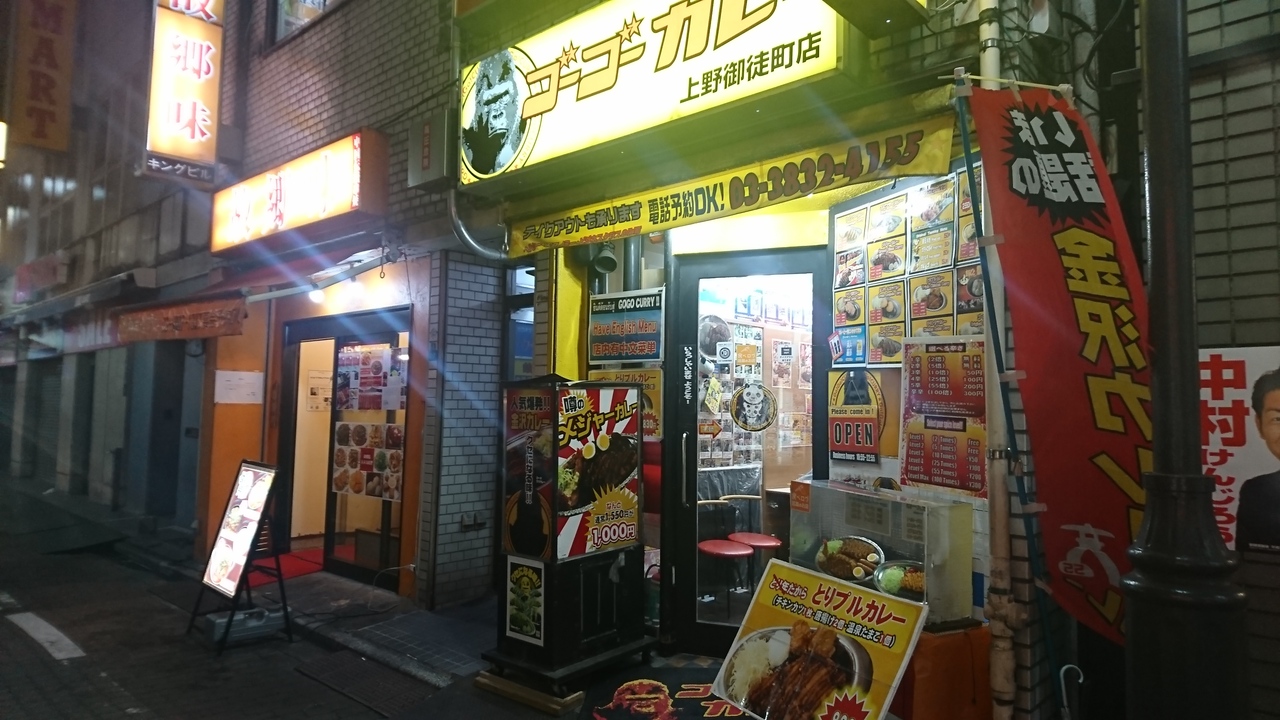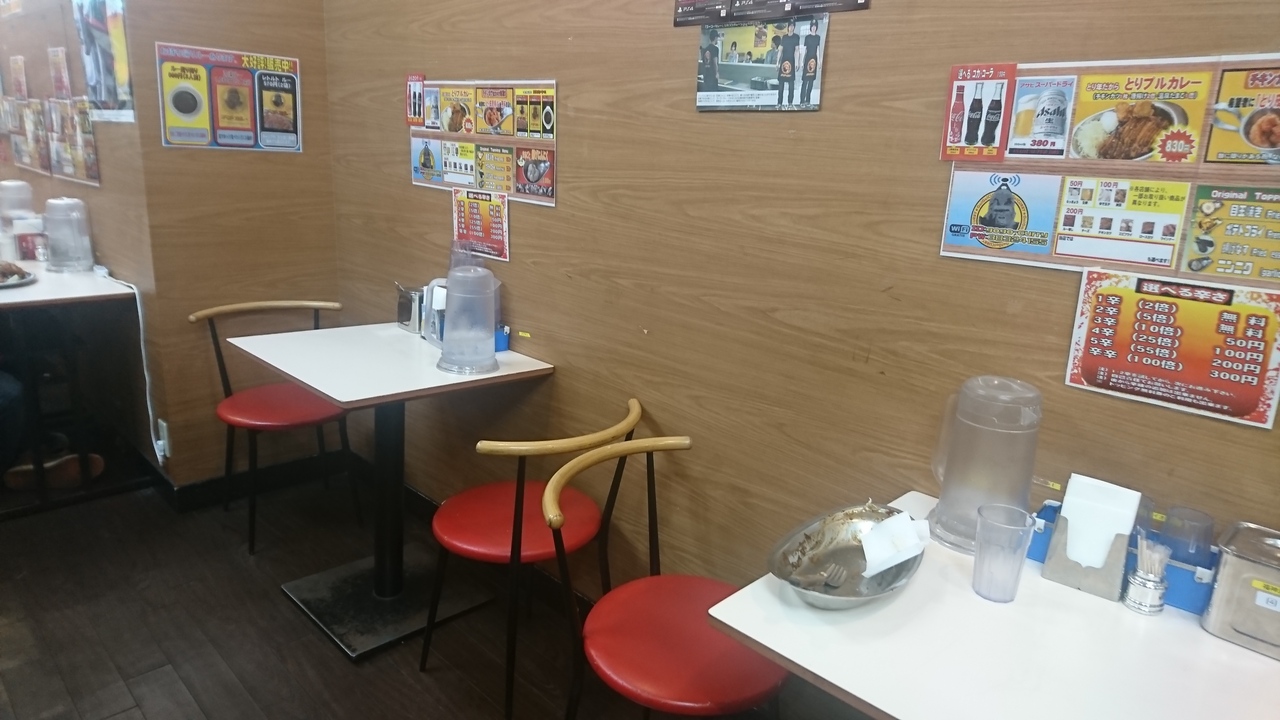 御徒町駅から徒歩数分。大江戸線上野御徒町駅からの方が近い場所にあります。お店のなかには来店したタレントの写真がずらり。メジャーカレーのレギュラーサイズが1000円でやっておりお得。お店のなかは改装された感じではあるものの、何となく中途半端。一部テーブルも急ごしらえの感あり。椅子が赤いせいか、何となく中華料理店っぽい。地域バージョンの コカ・コーラも売っています。