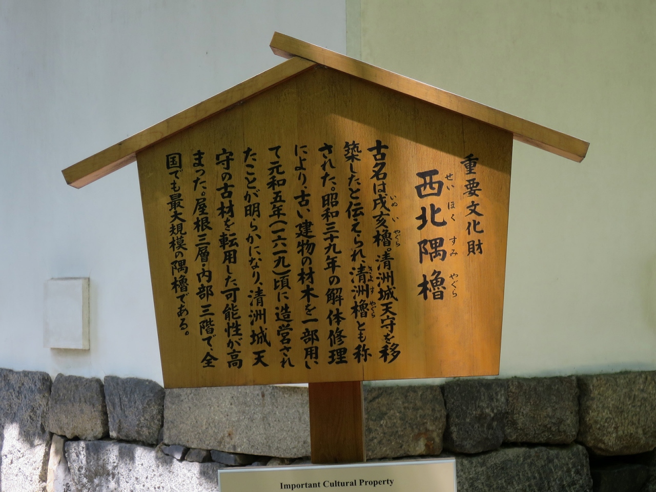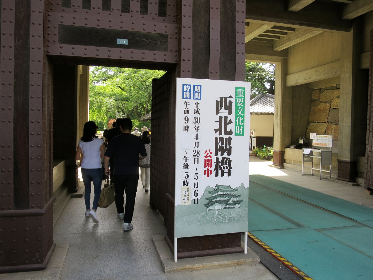 名古屋城に現存する3か所の隅櫓の中で、伝説に彩られた櫓といえば、この西北隅櫓、いわゆる清洲櫓です。以前から、織田信長の居城でもあった清洲城の天守を移築したのではないかと噂された櫓です。現在の説は説明板にもあるように、清洲越しの際、かつての清洲城の古材を用いて建てられたというのが定説になりつつあるようです。ともかく戦災をくぐり抜けた貴重な城郭建築ですから、櫓の内部に入ることができるのは大変に貴重な経験になりました。ただ消防法の関係で3階部分にはスタッフを含めて9名が上限となっているようで、45分ほど並びました。さて櫓内に入ってみればとても広く、説明板に全国最大規模とあったことが良く分かりました。またほぼ築城当時と変わらぬ造りも素晴らしいと思いました。
