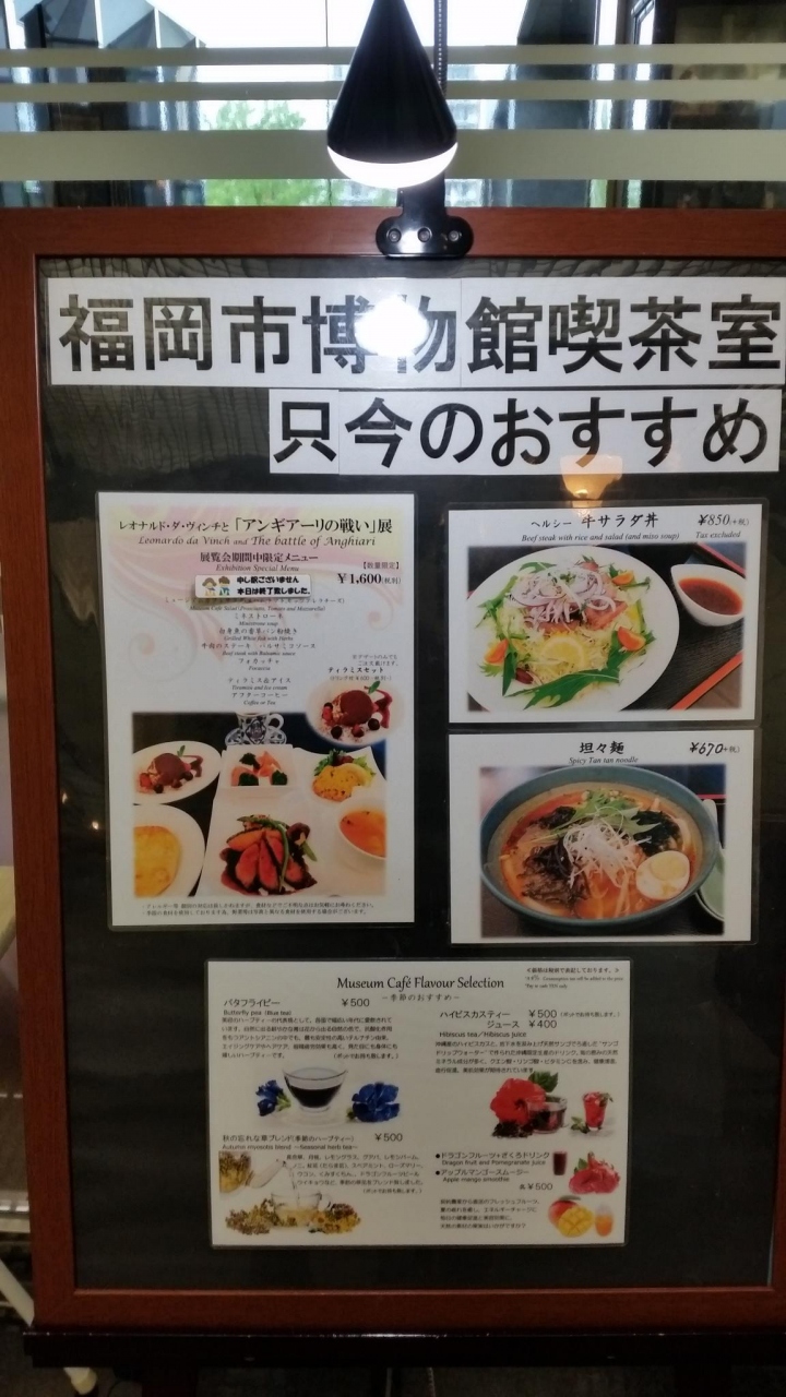天神から西鉄バスに乗って行きました。博物館南口で降りるとサザエさんがお出迎え。サザエさん通りです。目の前が博物館。従姉妹から割引券をもらい、1300円が1000円でした。行った友達の事前情報で「ダヴィンチの絵はないよ」とのことで、???と思いながら鑑賞しました。アンギアーリの戦いの絵やその模写、ダヴィンチの発明品などが展示してありました。だから、美術館ではなく、博物館なのねと思いながら鑑賞しました。