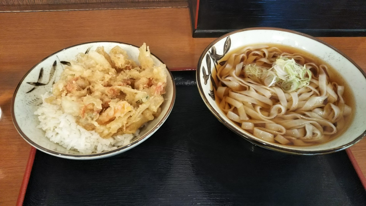 神谷町から御成門の方へ歩いていく途中にある立ち食いそば屋です。そばもありますが、きしめん風のうどんもおいしいですね。朝からがっつりとかき揚げ丼セットを注文。カツオの風味たっぷりのうどんとどんぶりが合いますね。
