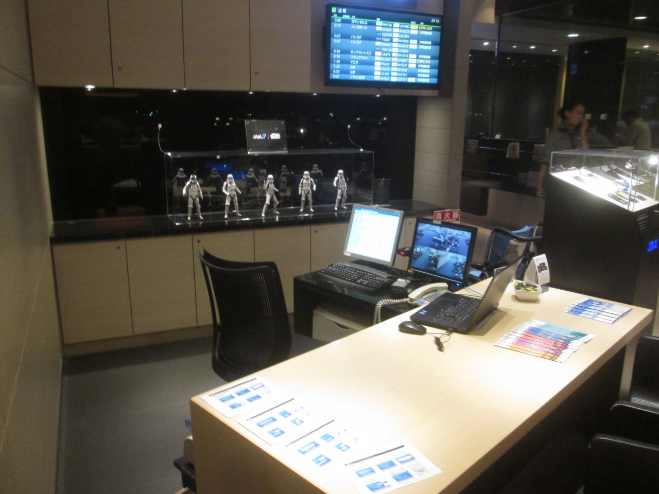 入口とダイニングエリアの2カ所に受付がありました。入口はつねに入場者やシャワールームの受付でスタッフがあわただしく対応に追われているような感じでしたが、ダイニングエリア側の受付のスタッフは、おそらく、ベテランと思われる人が行程・座席の変更に関して丁寧に特別なお客さんの対応にあたっていました。