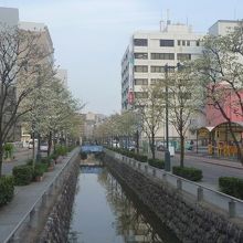 両岸は植樹や散策路が設けられていて、都市部の中のアクセントになっていた。ちょっとした街歩きにはよさそうな環境。