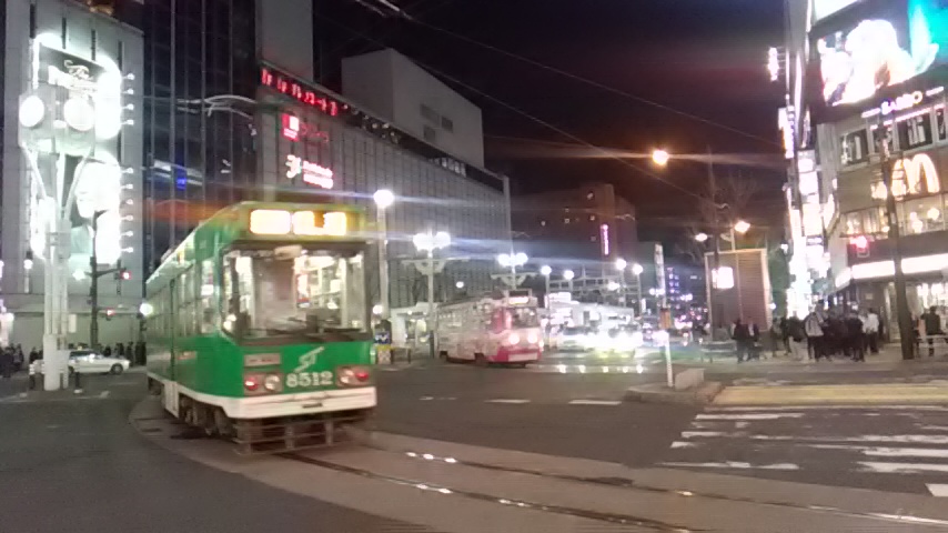 すすきの~西4丁目間がつながって環状運転がはじまり、狸小路停留所もできました。その他の区間は道路の中央を走りますが、狸小路停留所の前後の区間だけは道路の歩道側を走るので乗り降りしやすく、停留所もきれいです。