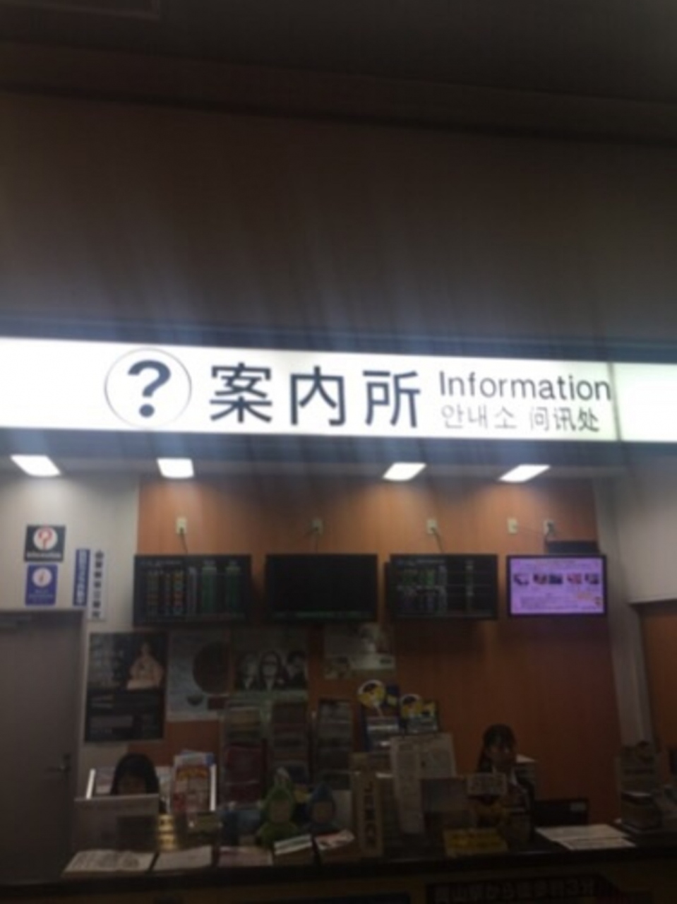 岡山駅の二階改札を出て、すぐの場所にある岡山の観光案内所です。