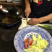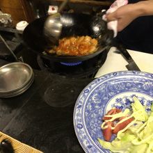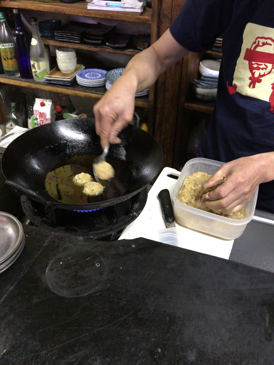 つくねは注文が入るとミンチ肉を油で揚げるところからスタート