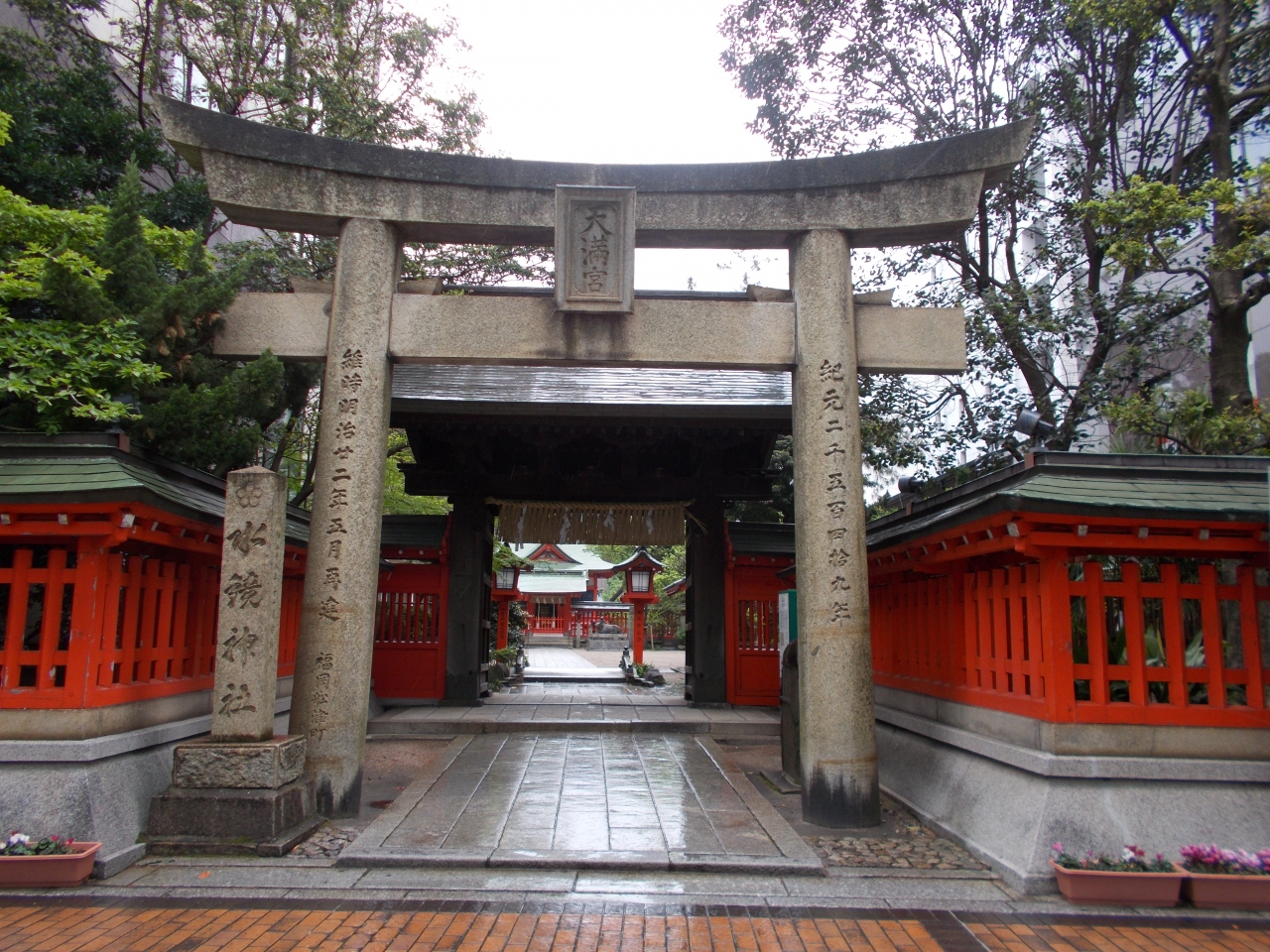 この水鏡天満宮は菅原道真公が博多に上陸し川の水で自分の姿を映しその谷津らた姿に悲しんだという場所に作られました。17世紀になって黒田長政が城下町づくりで福岡城の鬼門にあたる場所にこの天満宮を移築させました。今の場所です。天満宮は博多市内にいくつかありますがこの水鏡天満宮は趣があります。美しさを感じます。
