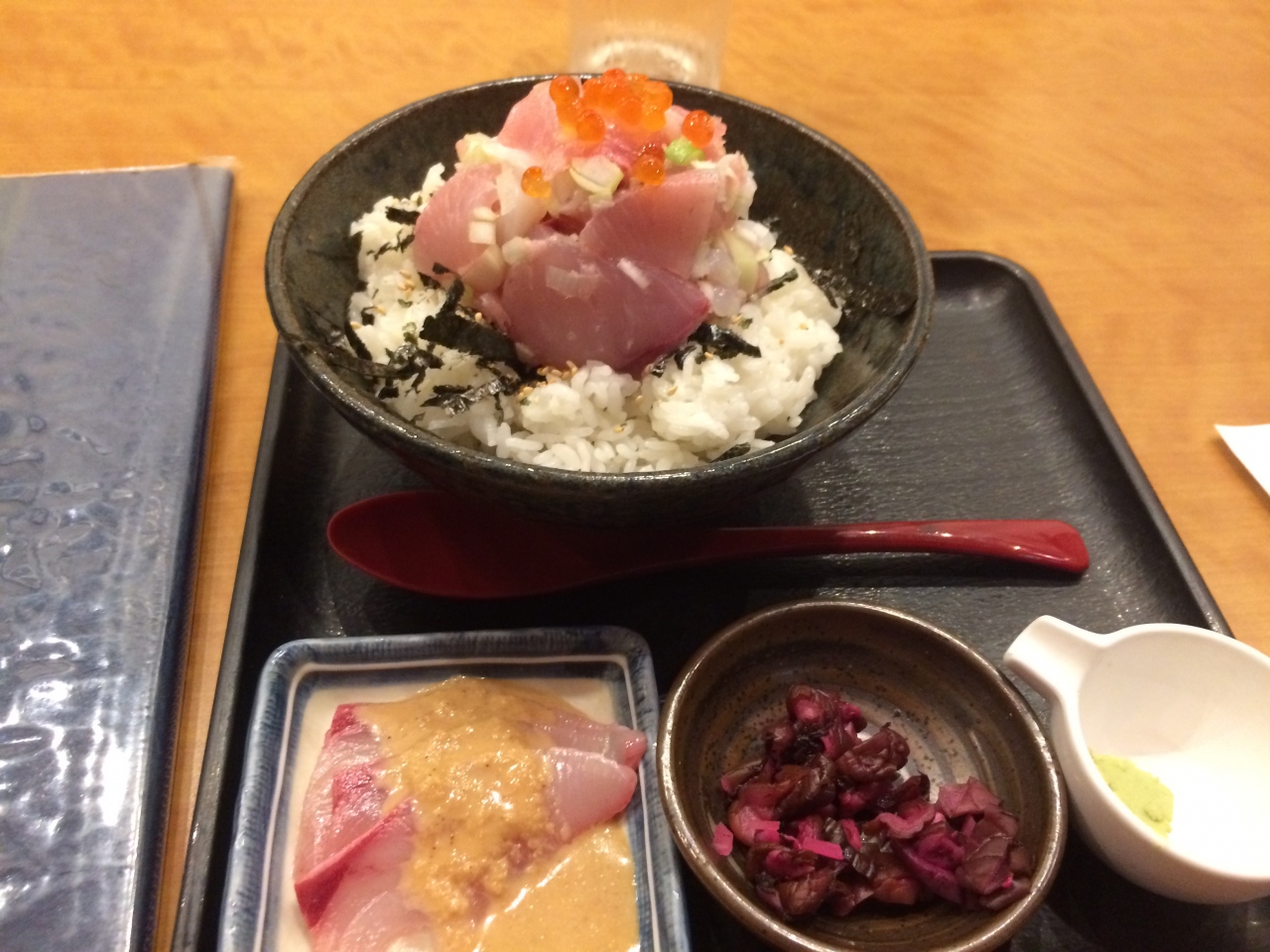 神奈川産の地魚数種類を細切れにした塊が丼のホカホカご飯の上にのっているとってもシンプル漁師飯。