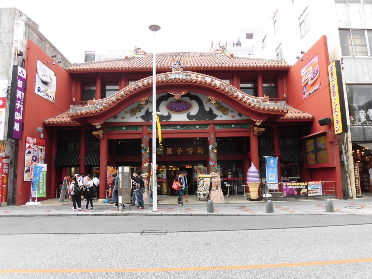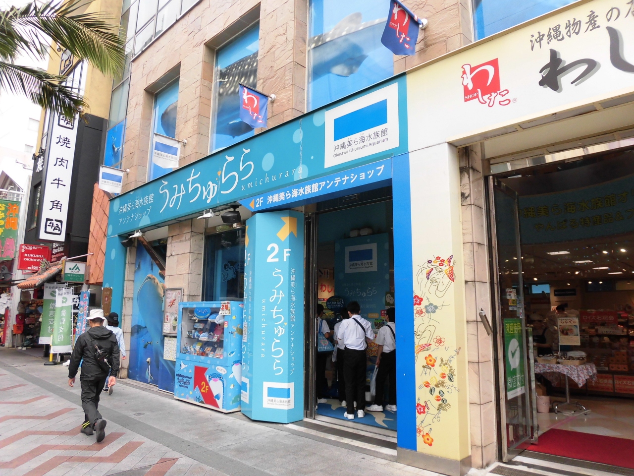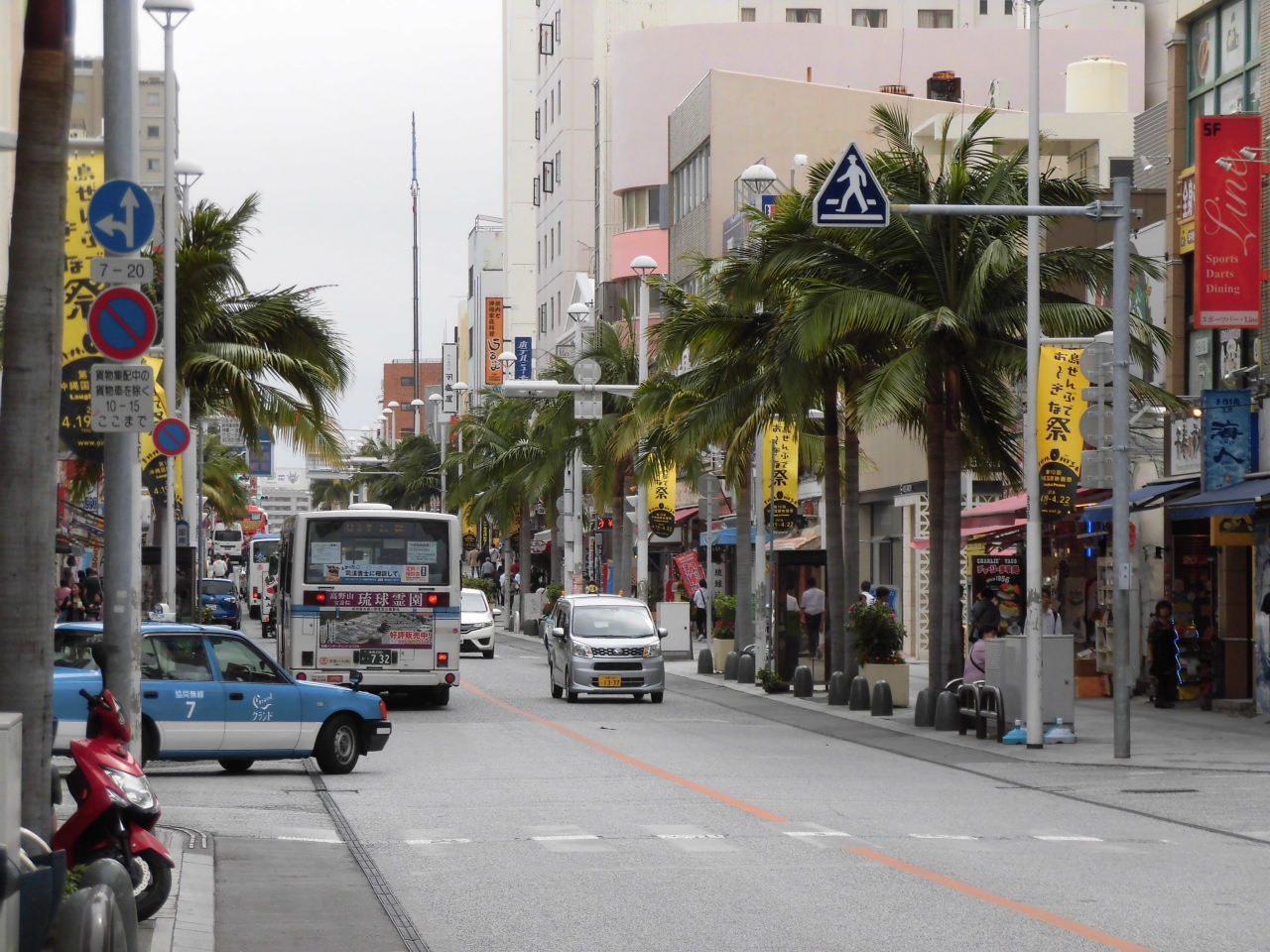 ゆいレール「県庁前」駅から約100mと便利な場所にあります。沖縄らしく通りにはヤシの木もあり、道路の両側にはお土産店がたくさんあります。おきなわパンツ、雪塩ソフトクリーム、シーサーなど沖縄のお土産や地元料理の店もあります。見ているだけでも楽しいですよ。