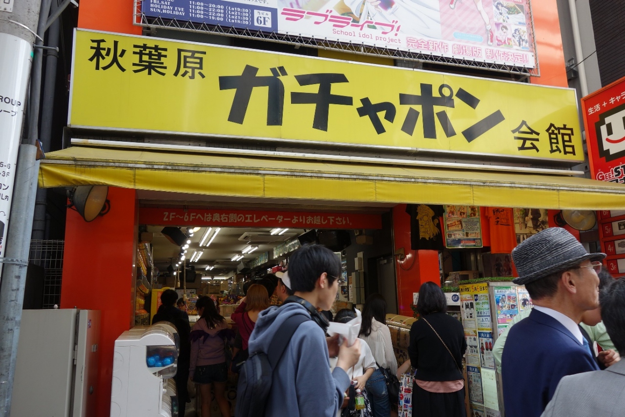 秋葉原にあるガチャガチャの専門店です。ものすごい数のガチャガチャが揃っていてアニメのキャラだけでなく話題のものや新しいものまでそろっていました。日曜日の秋葉原はすごい人出でこちらのお店も人でいっぱいでした。