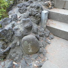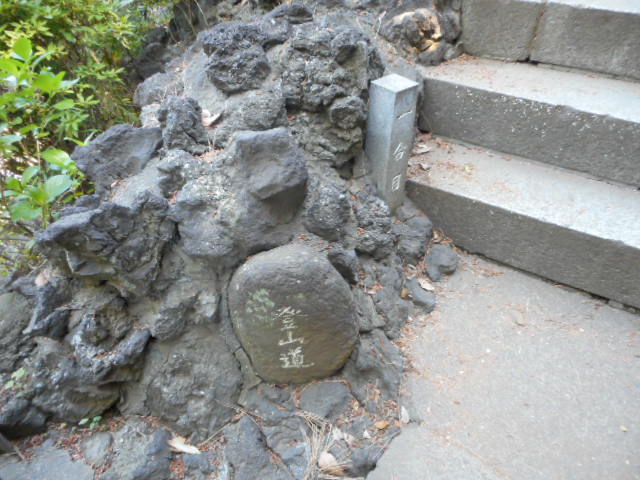 石段の途中、左手に「品川富士」への登山道があります。富士講では富士山は極楽と同一視され、一般庶民が気軽に登れる富士山として富士塚が江戸各所の神社等に建立されました。
