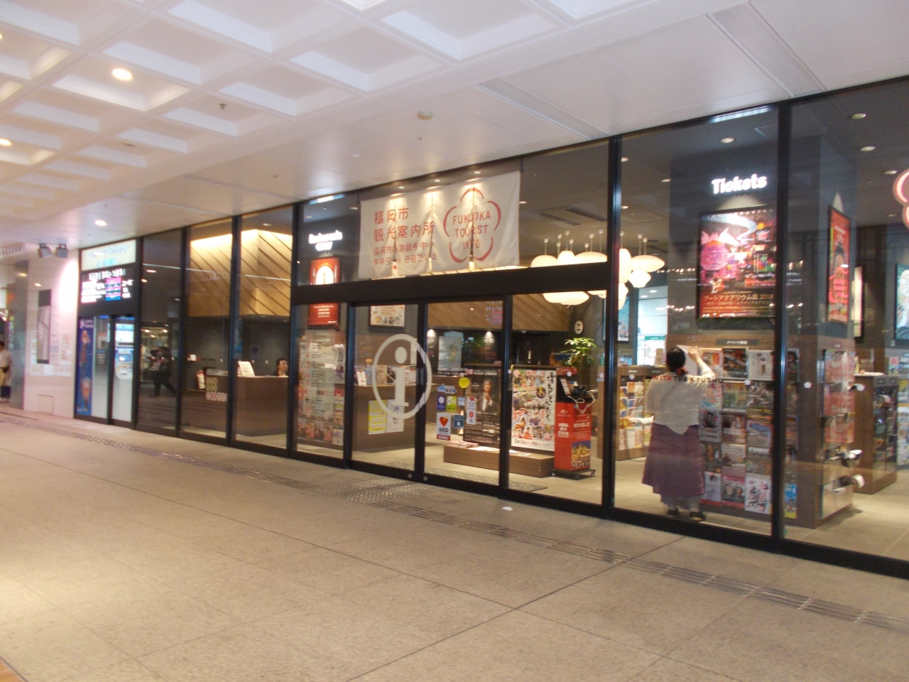 この福岡市観光案内所は天神にあるソラリアビルの1階にあります。三越の入り口の近くにあります。ライオン広場と言われるところです。案内所は広く資料も多く用意されています。スタッフも対応がよく情報もいろいろと提供してくれます。「福岡・博多 観光地図」は見やすくて役立ちます。