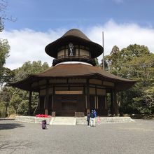 芭蕉翁の旅姿を表現した外観は、1階部は六角形・2階部は円形と形が違い、また、外観の色合いが、調和のあるなんとも言えない趣きを感じた。