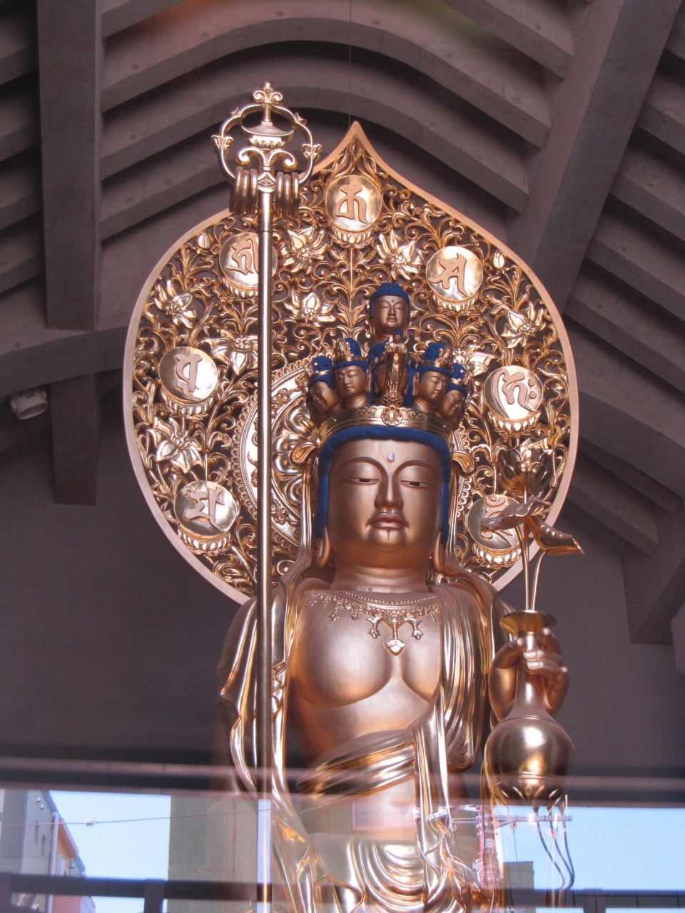 境内には東京大空襲で焼失、1993年に再建された高さ6メートルの十一面観音像が安置されています。金色に輝く大観音は一見の価値があると思います。