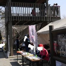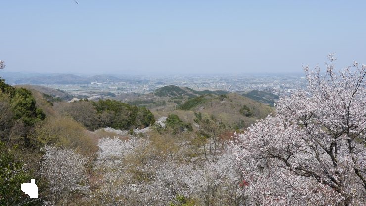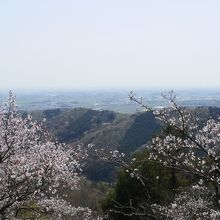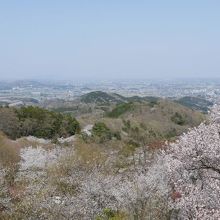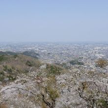 眺望は山頂手前の謙信平付近。駐車場もあり、飲食や土産物屋が並ぶあたりが桜の花とともに街並みを見下ろすことができていい眺めだった。