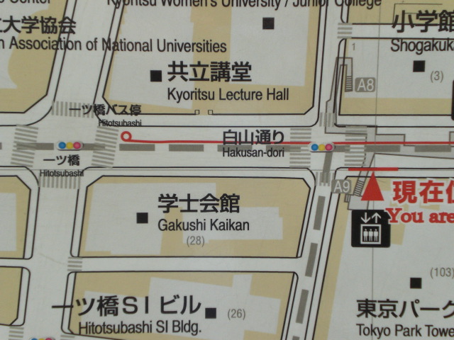 学士会館は、一ツ橋交差点の北側にあり、白山通りに面しています。
