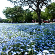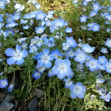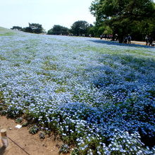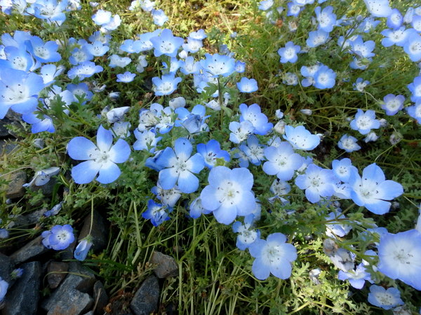 今年は例年より2週間ほど早いらしく、5月1日に行ったころにはすでに見頃が過ぎていましたが、それでも部分的にはまだ青いネモフィラのじゅうたんが楽しめました。