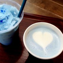 ネモフィラブルーラテとネモフィラブルーバニラアイスもここならでは。