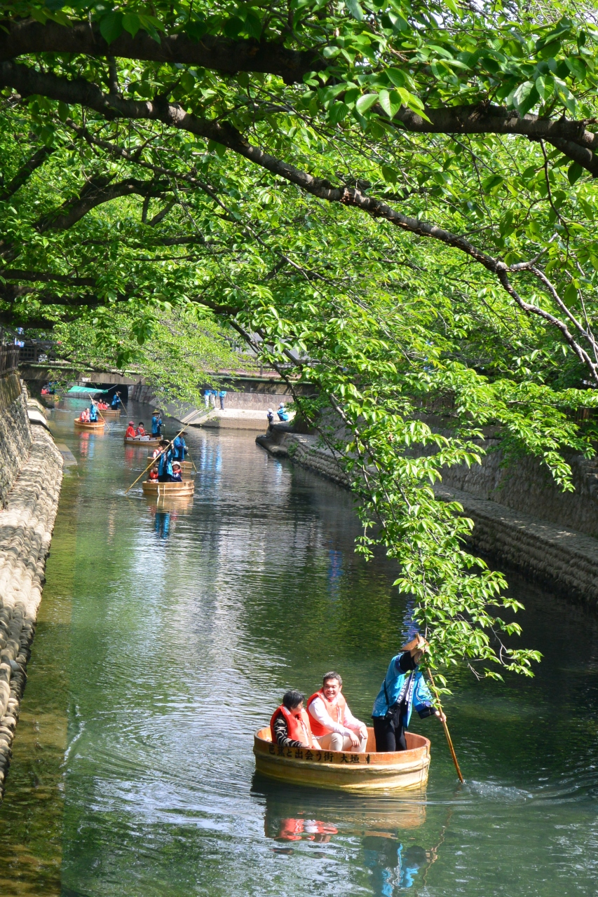 船頭さんの説明を聞きつつ、新緑を眺めながら、