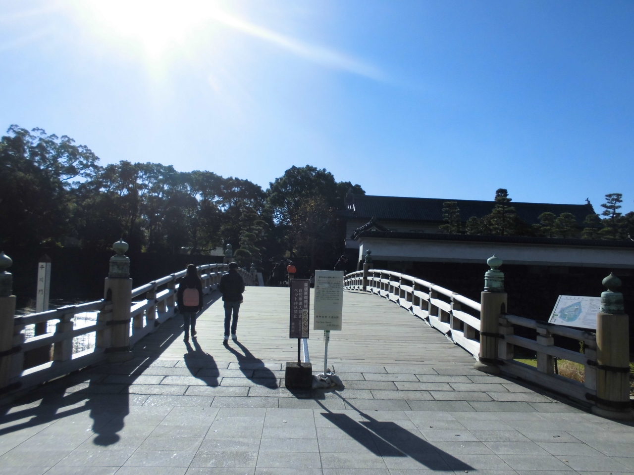 皇居の真北にある門です。ここから皇居東御苑に入ることができます。でもそれ以上に気になったのは平川門の橋の下を流れる堀。なんと藻がびっしりと繁殖していました。行ったのは12月にもかかわらず、藻の色で堀が実に青々としていました。堀の方に目が行くのは意外でした。