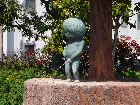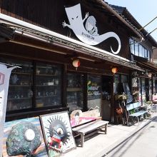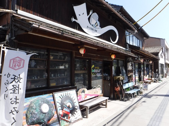 境港駅前から1キロにも満たない道ですが、すべてがゲゲゲの鬼太郎で統一されています。歩道には鬼太郎の登場人物(妖怪)のブロンズ像が153体あるそうで、あっちを見てもこっちを見ても妖怪ばかり。道の両脇に並ぶ店や建物も鬼太郎一色で、ついつい覗いてしまいました。想像以上に楽しい場所です。