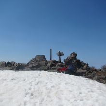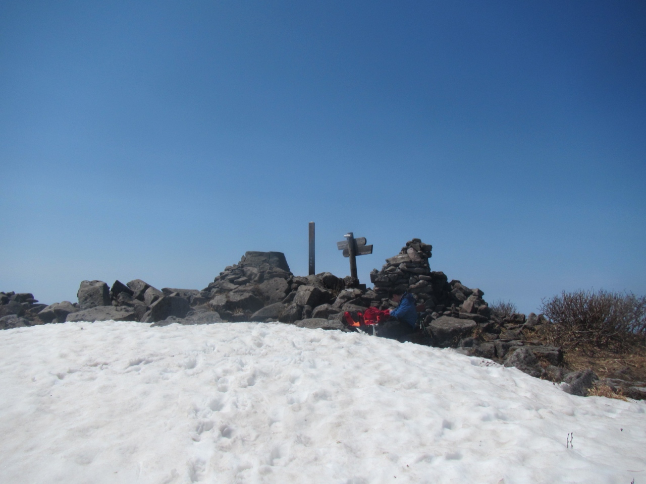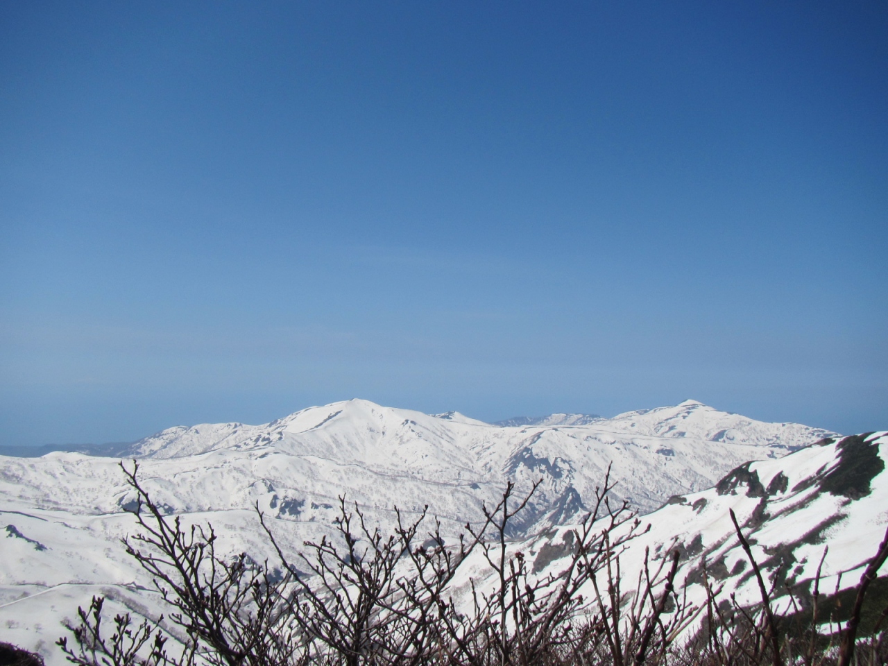5月は日差しも明るいが、春山登山と言っても、一部の稜線などを除いて、まだ厚く雪が残ったままで、春スキーにも人気の山である。