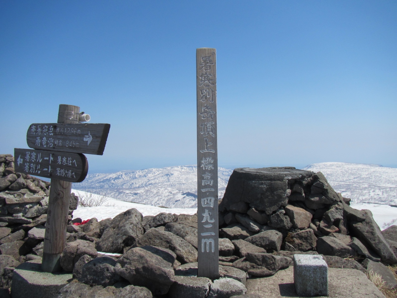 この山の山開きは6月中旬であるが、5月上中旬の休日などは、2、30人ほどのスキー客が訪れていて、暑寒荘前の駐車場はすでに埋まりかける具合に混んでいた。