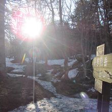 2合目より下では、樹林密度が少し濃くなり、傾斜もかなり緩やかになるためか、雪はかなり積もっていたが、シュプール跡は見つからなかった。