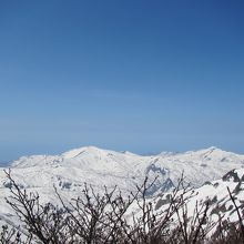 日本有数の豪雪地帯を背後に控え、その前面で日本海に面し、春遅くまで雪が残り、その白い山容が美しい山である。