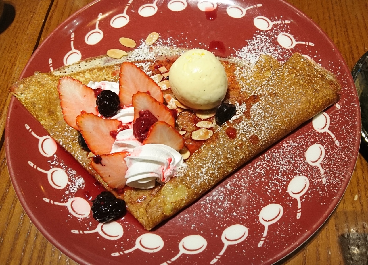グランフロントに入っているお店です。夜はお酒メインのようですが、カフェタイムはクレープやガレットが頂けます。料理が美味しいのはもちろんですが、食器やドリンクが入っているグラスが可愛いのでテンションが上がりました。