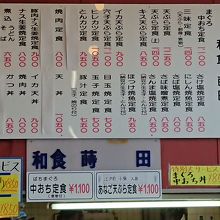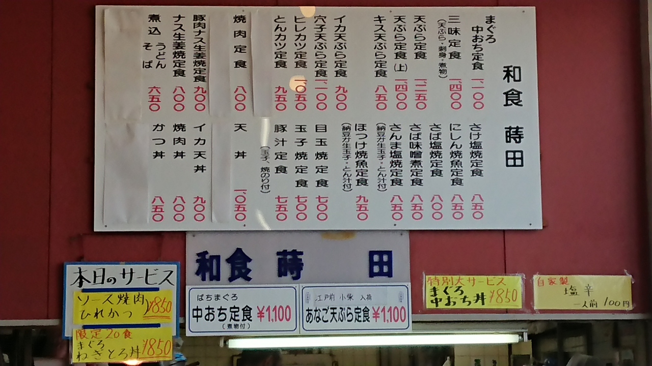 横浜市中央卸売市場南部市場にある、南部亭内にあります。ここには、数店の飲食店が入っていて、好きなお店で注文して、中央のテーブルと椅子で食べます。テーブルには暖かいお茶とコップが置かれていました。