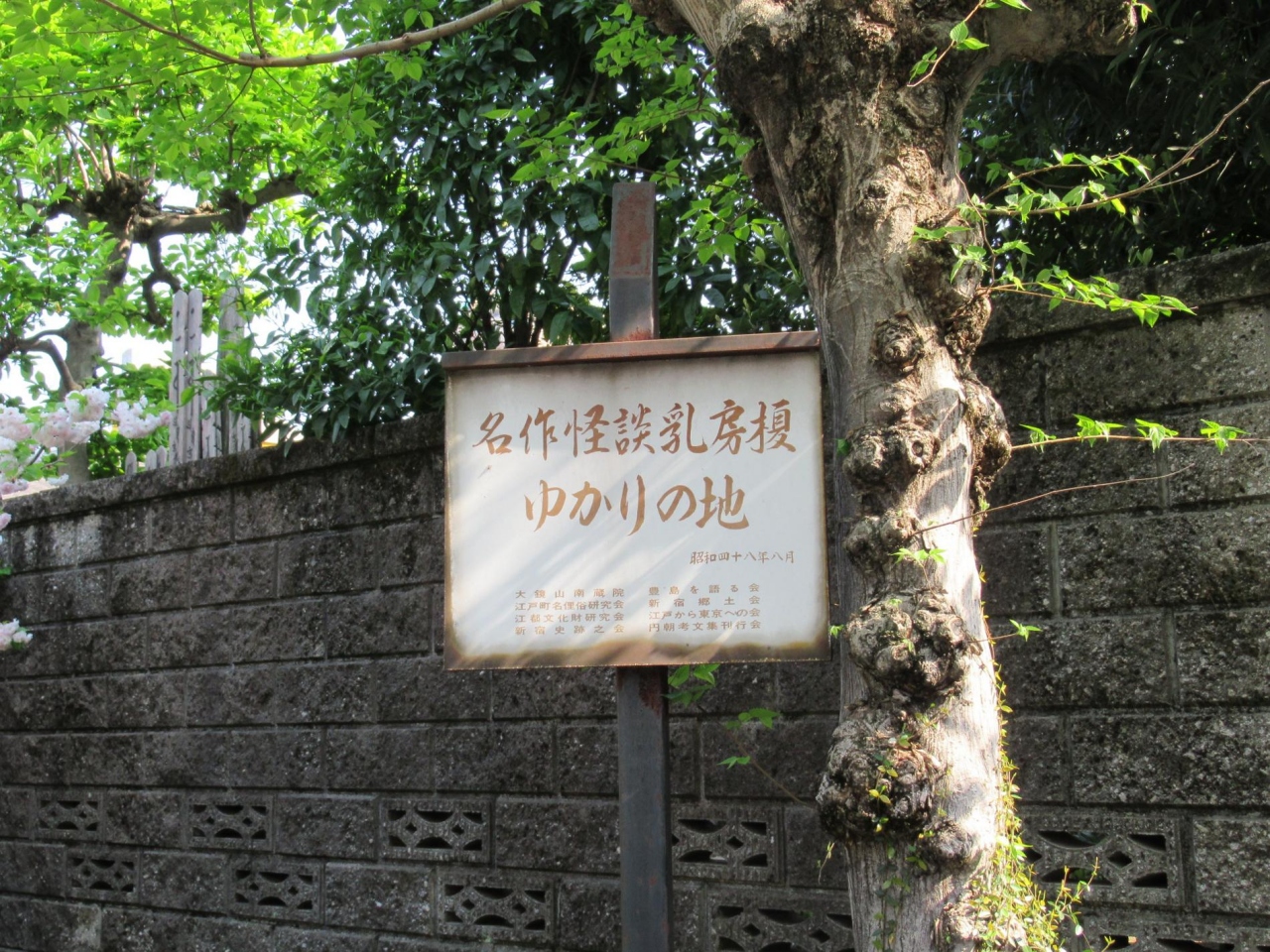 また、三遊亭圓朝作の「怪談乳房榎」にゆかりの寺でもある。