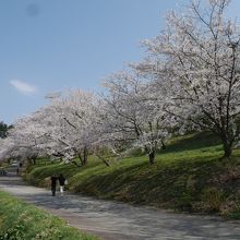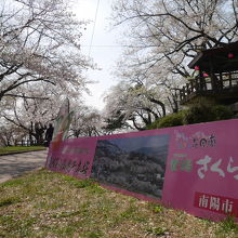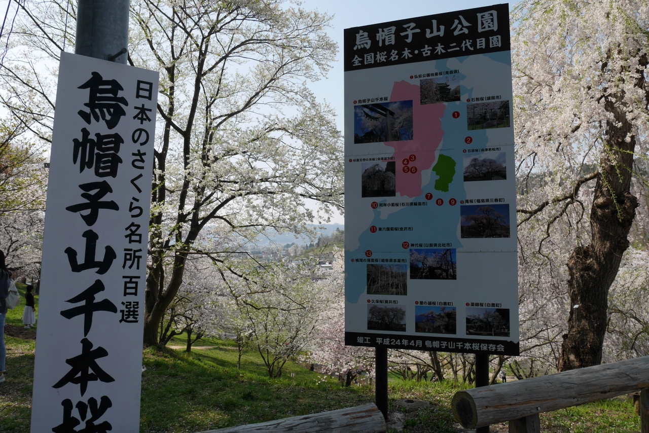 山形でも有数の桜の名所。公園全体に桜が植えられていて、満開の時期は見事に山が桜色に染まります。ここの面白いところは色々な種類の桜が植えられていて、一つ一つ違った姿を楽しむことが出来ます。線路が近いので、公園の上からは山形新幹線が走る姿も見ることができました。