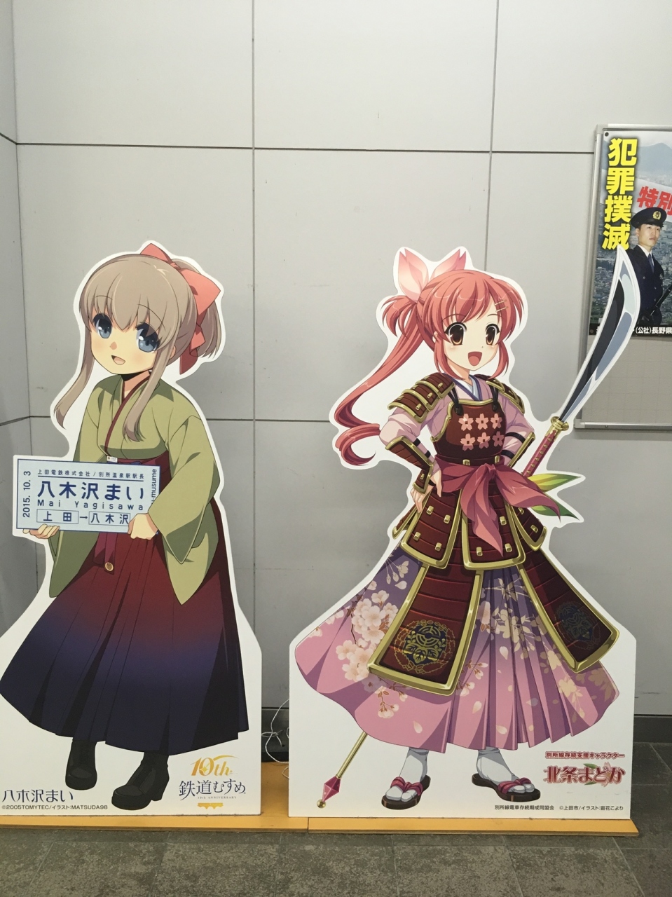 ひたすらのどかな車窓をゆっくりと駆けてゆく、なんとも言えないゆるい感じに癒されます。終点の別所温泉駅は古き良きと言った趣のある感じでした。が、何故かそれ以外の駅はアニメ推しなのか駅名の看板が今風なアニメキャラでデコられていたり、上田駅に至っては校内放送もまさかのアニメ声でした(笑)。