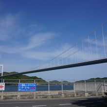 レンタサイクルで進むと橋へのアプローチの道は坂道でしんどいですが、橋の上はとても青い海で爽快なサイクリングです。