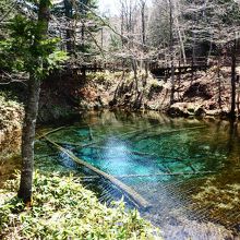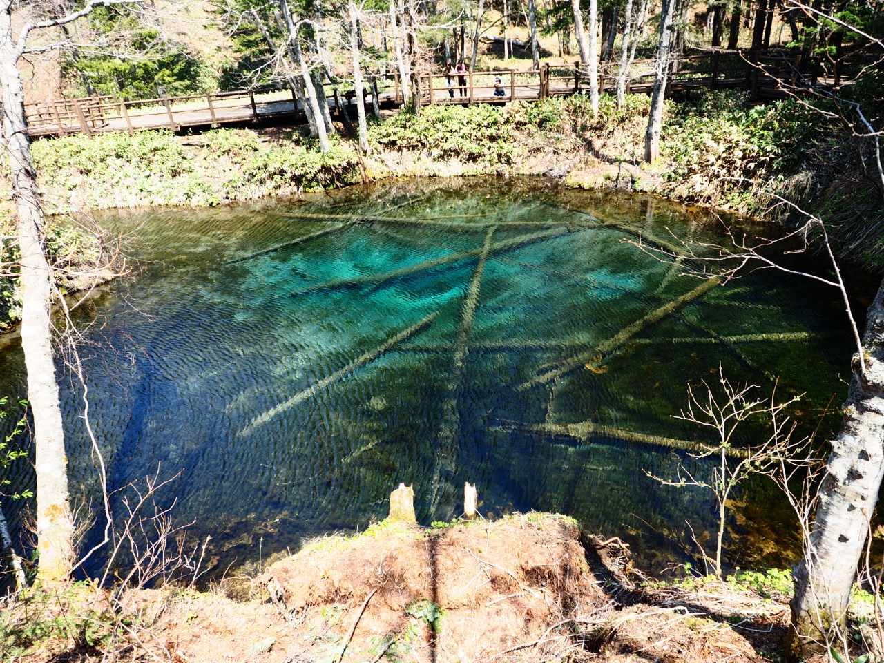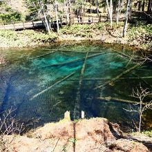 水が澄んでいるので倒木が沈んだ底までくっきりと見え神秘的な不思議な美しさを見せてくれます。