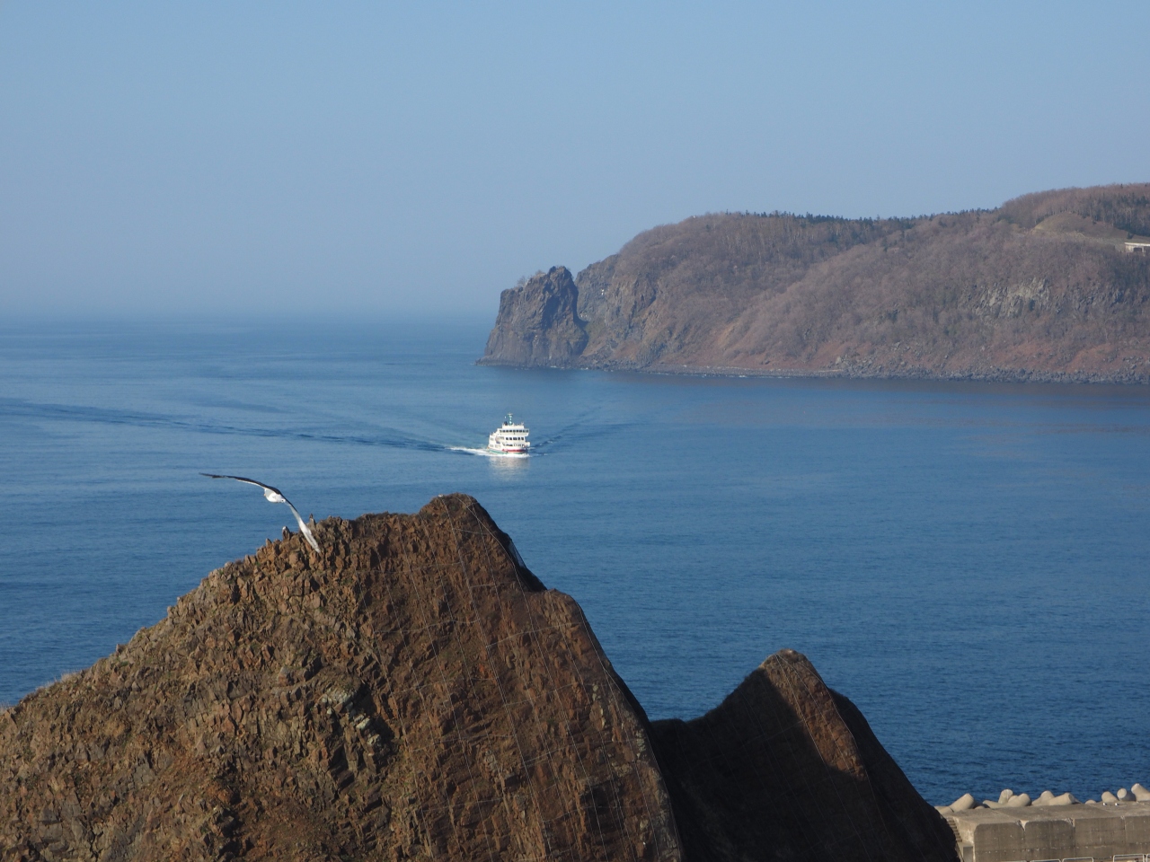 ウトロ漁港のそばのゴジラ岩の向かいにある、丸いこんもりとした岩山で、無料の駐車場から階段を200段上ると岩山の頂上に出て、知床連山やウトロ漁港の周辺の360度の景色が楽しめます。 また、岩の斜面にいるカモメも身近に見ることができます。