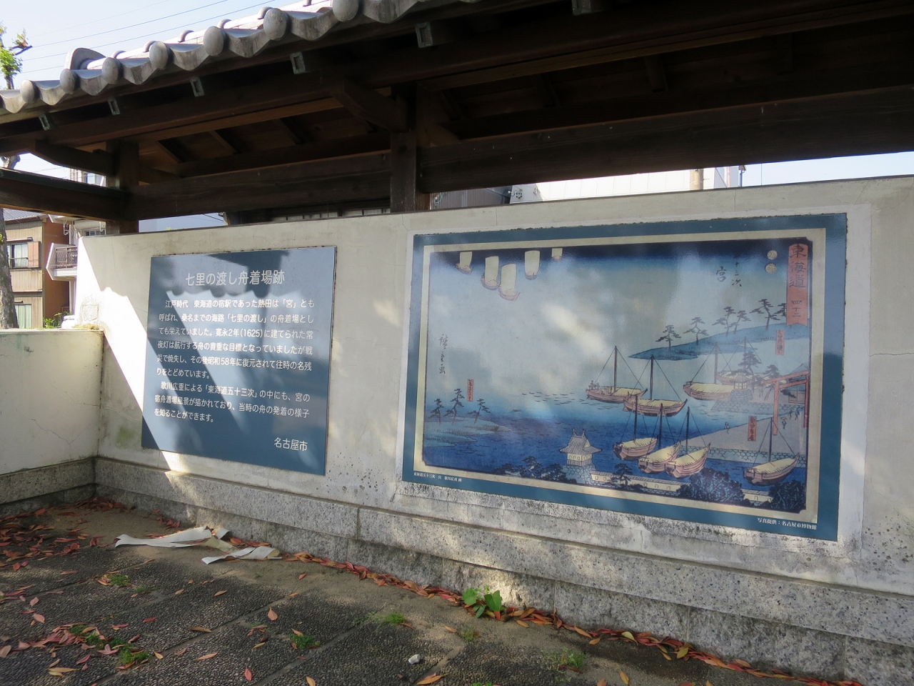 東海道最大の宿場町「宮宿」です。ここから桑名宿までの七里は東海道唯一の海路で、ここから渡し船を利用することになります。その船着場址は「七里の渡し公園」という歴史公園として整備され、「時の鐘」や「常夜灯」などが復元されています。その七里の渡し公園」の目の前には江戸後半に建てられた旅籠の建物も残されており、束の間、江戸時代にタイムスリップすることができます。