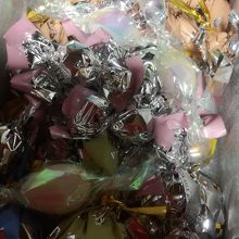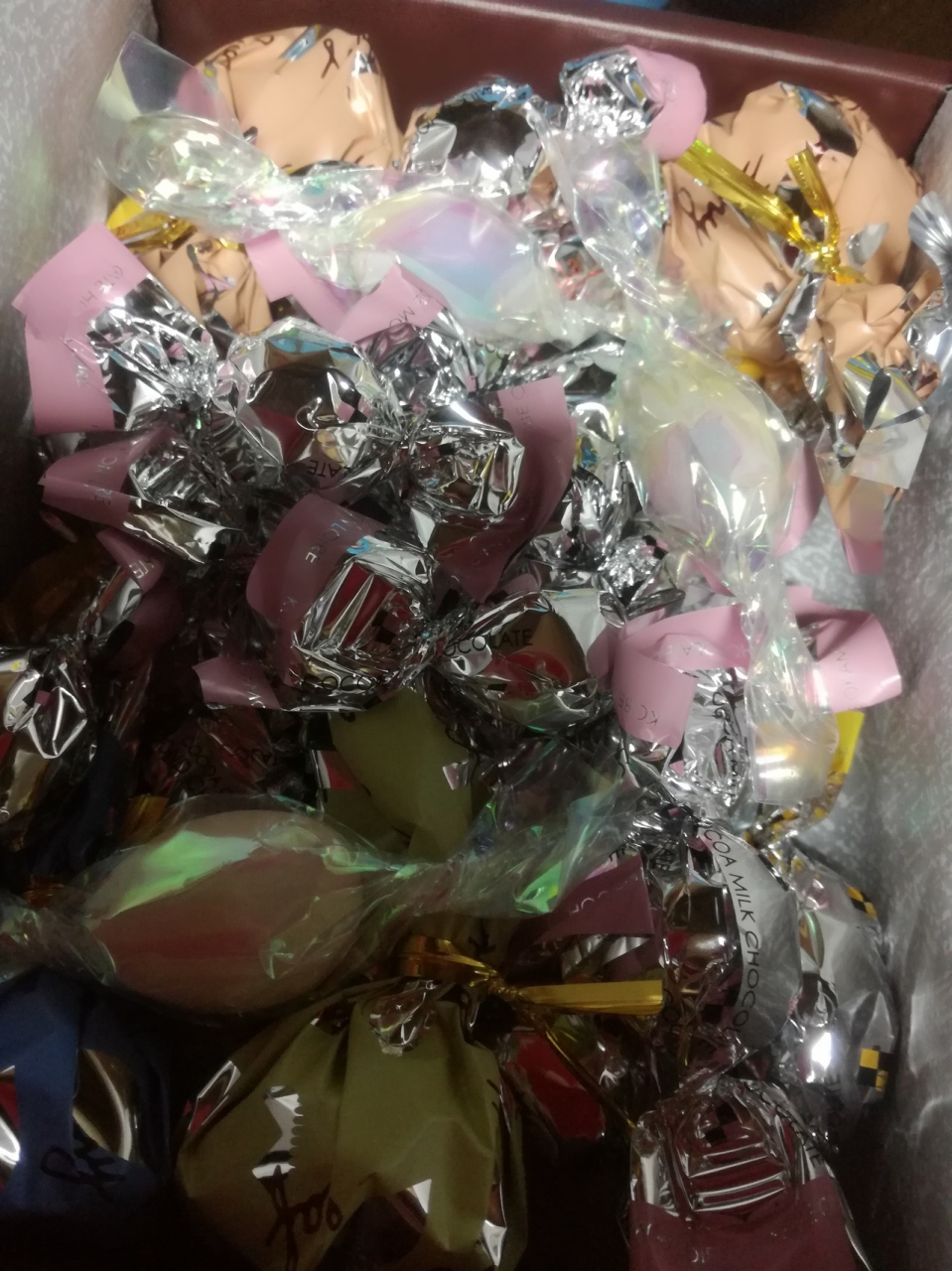 箱入りでアーモンドやナッツが入ったキャンディのようなチョコとリーフチョコの詰め合わせです。抹茶、ストロベリー、ブルーベリーの3種類入りでした。