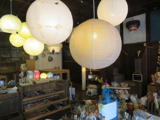 乾物屋だった築80年の昭和の建物を利用した雑貨店、東武健康ハイキングの途中、休憩スポットになっていたので立ち寄りました、店内には和紙を利用した手作りの提灯型の照明器具が吊るされていました、手作りの雑貨とお菓子も多く販売されています、お店の人は親切な対応をしてくれてました、周辺には歴史ある建物が並んでいました。