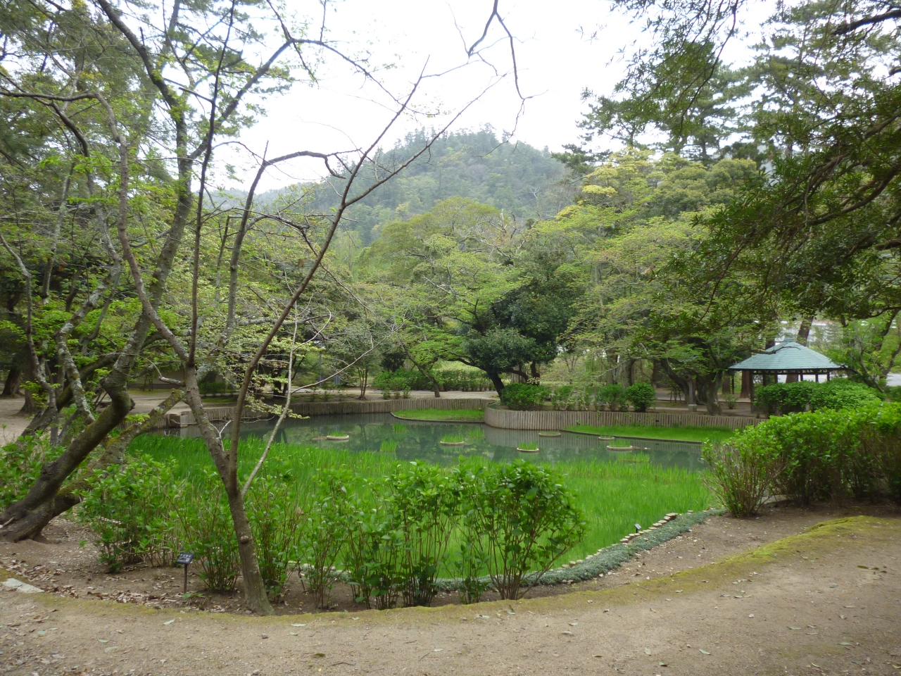 参道の右にある祓社の左側から、池に下りる道がありました。大きい池で季節によっては、花も楽しめるようでした。観光客がいなくて、緑に囲まれたとても静かな場所でした。この池に身を映して心を清めてからお参りをしました。