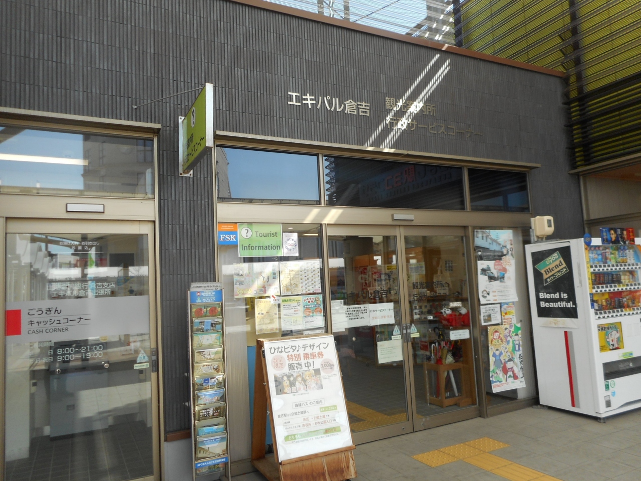 倉吉駅南口を出た所にある観光案内所です。鳥取県内の観光地のパンフレットは揃っています。私たちはここで、「湯~遊2デイパス」という倉吉の市バスの2日間振り乗車券を購入しました。このパスは倉吉駅から三朝温泉やその奥の三徳寺、また白壁土蔵群までの市バスの乗車が2日間できるというものです。これがここで買えるのはありがたいですね。