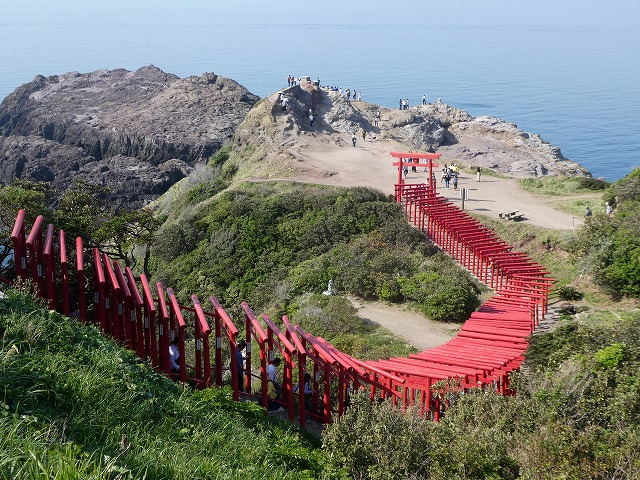 絶景スポットとしてよく紹介される山口県長門市の「元乃隅稲成神社(もとのすみいなりじんじゃ)」。はるばる出かけてきましたが、なかなかの絶景ではあるものの、日本列島のほぼ西端にこんなにたくさんに観光客が訪れるのは、やっぱりインスタ映えってことなんでしょうね。