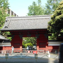加賀藩の屋敷跡に建てられた東京大学には、江戸時代、加賀藩の御姫様が徳川家に輿入れする際に造った”赤門”が在り、現代も金沢の色合いの錆赤のような茶赤に塗られています。金沢を旅すると、この赤色の壁などを目にします。東京大学の正門は、もう少し、先に構えてありますが、この”赤門”は東大の別名称のような建物で誰でも通り抜けできますので、自分達も赤門をくぐって安田講堂へ行きました。
