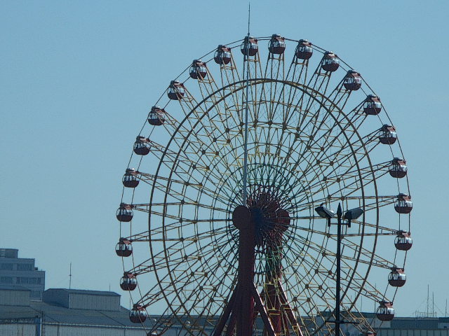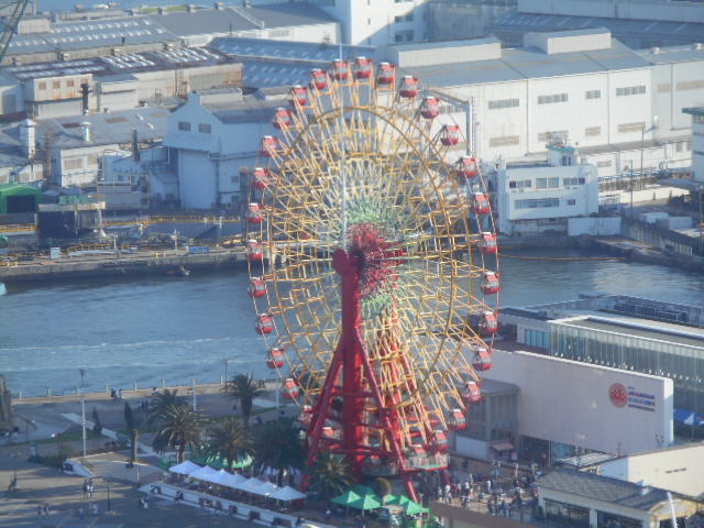 神戸のハーバーランドにあるUMIEにある観覧車です。赤いかわいらしい車体は、海の風景によく似合っています。観覧車内は冷房付きだったので快適でした。そんなに大きくはないけど、ビルの上だし、周辺は海で高い建物もないので景色はよかったです。夜景もいいかも。