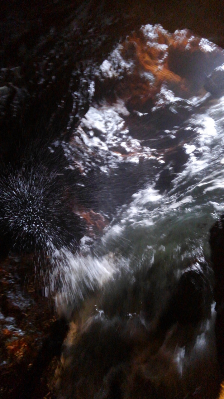 三段壁の上からは見えませんが、1300円でエレベーターを利用し地下の洞窟に降りる事ができます。そこには、水の神様である弁財天様が奉られています。昔、熊野水軍が船を隠しておいた洞窟には荒波が豪快に入っては出てしばらく見ていても、少しも飽きがきません。