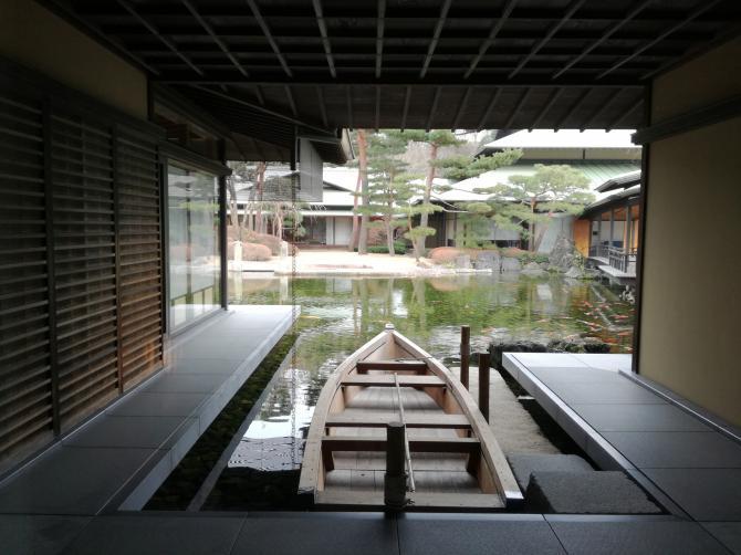 建物内には素敵な調度品が数多く展示されていて、また日本庭園にある池には小舟が浮かんでいて、来賓の方々が楽しめる作りになっています。