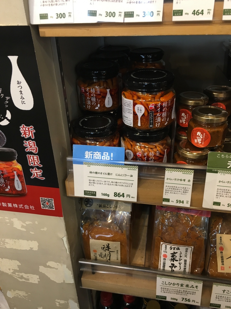 表参道に訪れ、久しぶりにこちらのお店に行って来ました。相変わらず素晴らしい品揃えです。地ビールに地酒そしてそれらに合う珍味系のつまみ。何でも欲しくなってしまいます。新潟といえば、柿の種。その柿の種をオイル漬けにしたおかずが売っていました。お米に野菜、何でもあります。